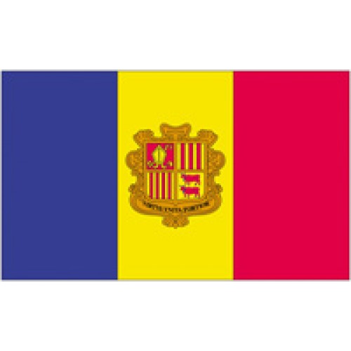 This 2x3' Nylon Andorra flag is made from a dense 200 Denier SolarMax® Nylon to help resist fading and other effects from normal outdoor use.  This nylon material outperforms all other nylon flag materials around.