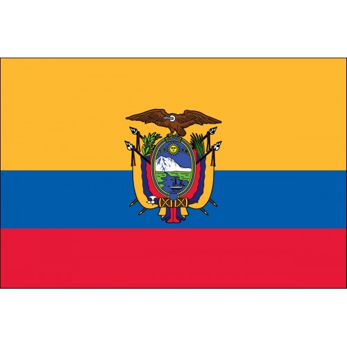 This 2x3' Nylon Ecuador flag is made from a dense 200 Denier SolarMax® Nylon to help resist fading and other effects from normal outdoor use.  This nylon material outperforms all other nylon flag materials around.