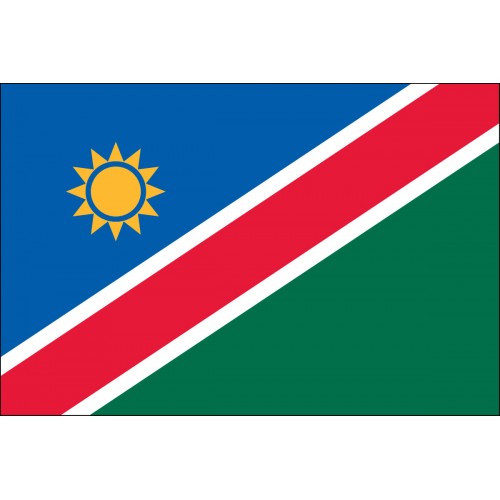 This 2x3' Nylon Namibia flag is made from a dense 200 Denier SolarMax® Nylon to help resist fading and other effects from normal outdoor use. This nylon material outperforms all other nylon flag materials around.