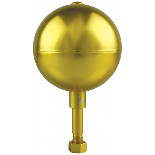 This is a 3" Gold Aluminum Ball for an outdoor flagpole. It has a 1/2"-13NC Spindle Threading