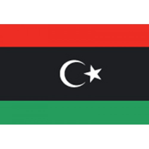 This is a 4x6& Libya Flag which is mounted on a 3/16& x 10& Staff.
