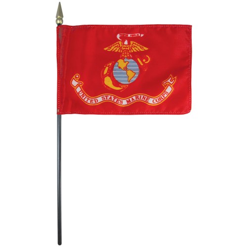 This is a 4x6" Marine Corps Flag which is mounted on a 3/16" x 10" Staff.