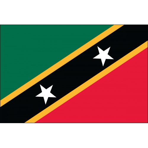 This is a 4x6" St Kitts-Nevis Flag which is mounted on a 3/16" x 10" Staff.
