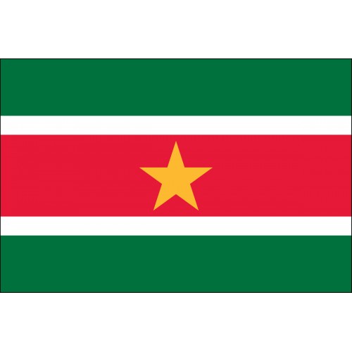 This is a 4x6" Suriname Flag which is mounted on a 3/16" x 10" Staff.